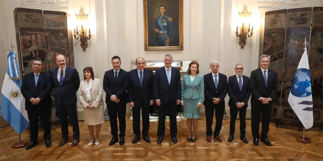 La titular de Relaciones Exteriores encabezó la reunión de la "Comisión de Coordinación Interministerial" para la accesión a la OCDE, en la que se recibió al funcionario belga y su equipo de colaboradores. Participaron, también, los siguientes ministros del Gabinete nacional: jefe de Gabinete de Ministros, Guillermo Francos; ministro de Desregulación y Transformación del Estado, Federico Sturzenegger; de Defensa, Luis Petri; de Salud, Mario Russo; de Seguridad, Patricia Bullrich; de Justicia, Mariano Cúneo Libarona; el secretario de Finanzas, Pablo Quirno, y el secretario Legal y Técnico de Presidencia de la Nación, Javier Herrera Bravo.