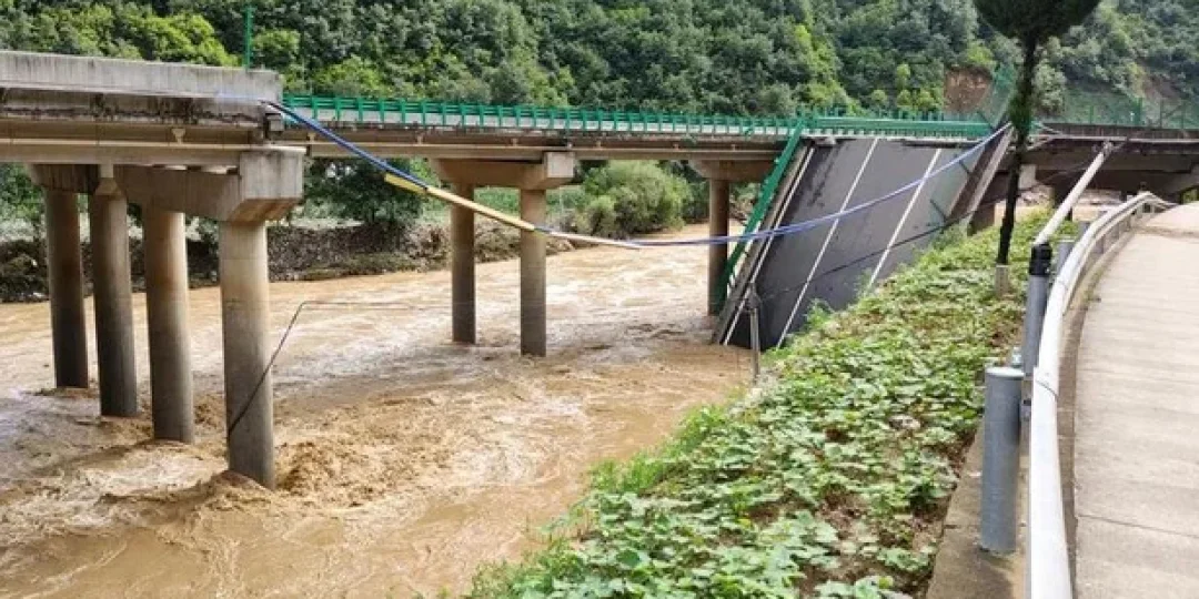 Se desmoronó la estructura que cruza el río Jinqian y los vehículos cayeron al agua. Estiman 31 personas más desaparecidas