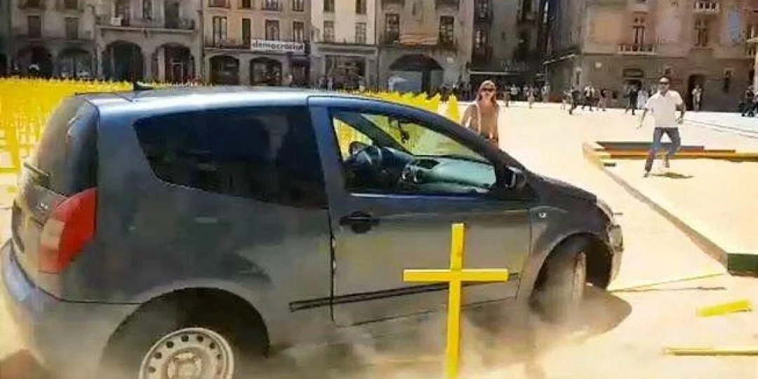 Un coche derribó las cruces en homenaje a presos políticos de Barcelona. El video se viralizó rápidamente vía redes sociales