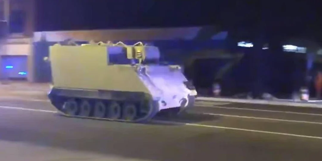 Como en esta caso no podía detener al blindado reventando los neumáticos, como puede hacer con un vehículo clásico, la policía debió perseguirlo hasta que el soldado se detuvo y se rindió.