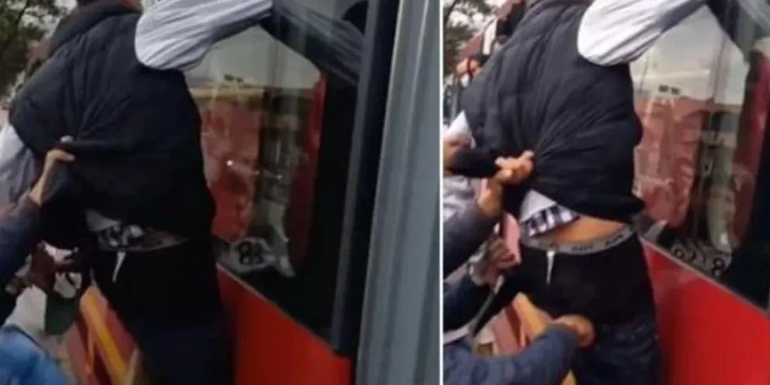 Un ladrón quedó colgado en un autobús de la empresa TransMilenio de la ciudad de Bogotá en Colombia. El hecho ocurrió cuando un delincuente entró a un colectivo y los pasajeros intentaron bajarlo a la fuerza de manera violenta.