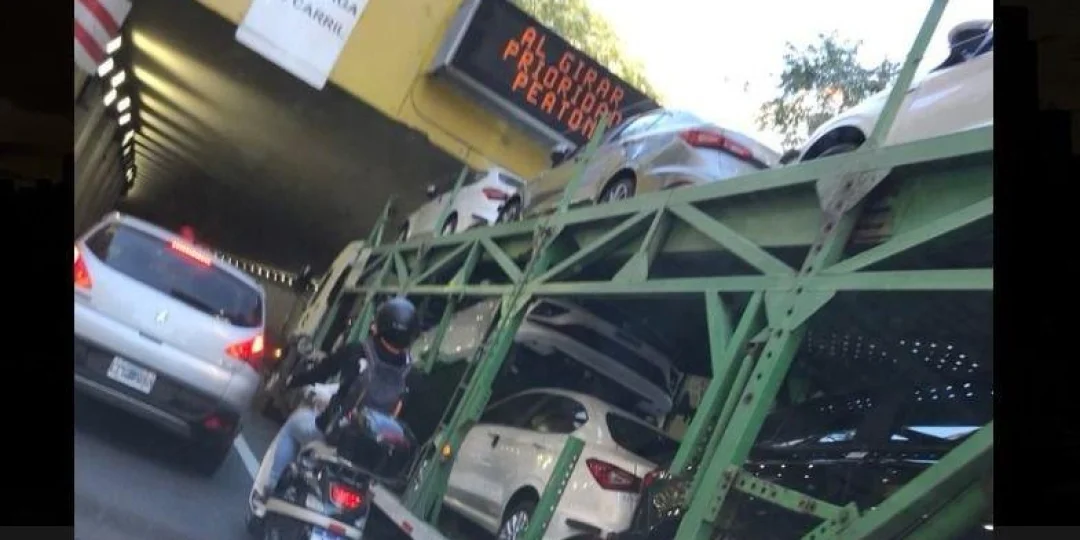 Por el choque contra el borde superior del túnel, varios vehículos 0 kilómetros que eran transportados en el camión sufrieron destrozos, aunque no se registraron heridos.