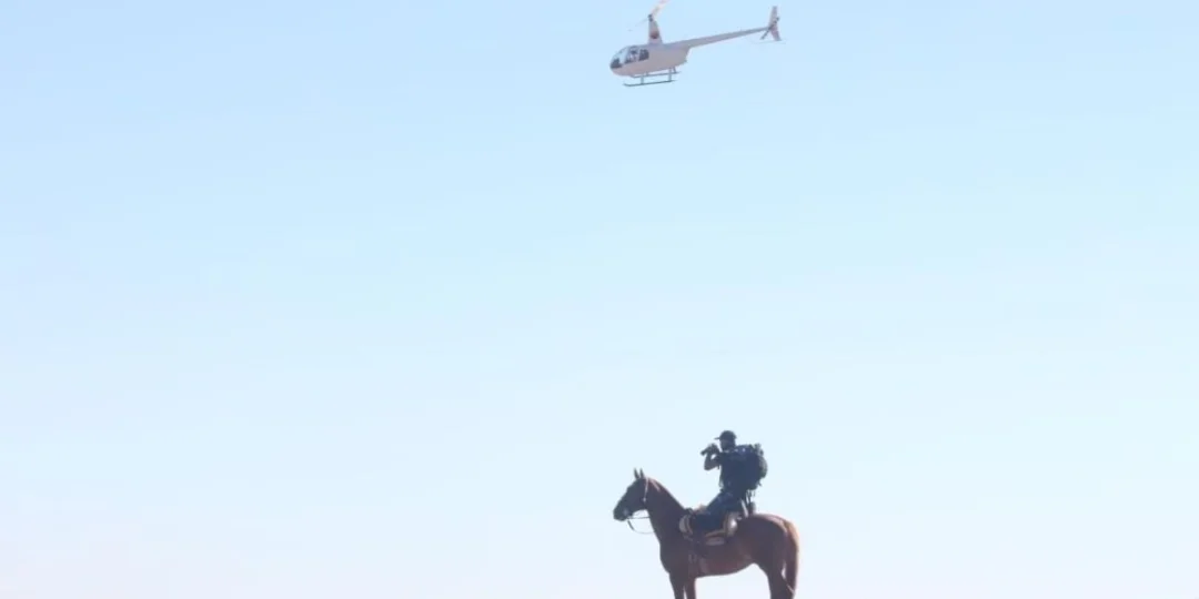 La Policía provincial, Gendarmería, Policía Federal, Protección Civil y la división de canes son apoyados por drones y un helicóptero en el rastreo en un terreno desértico con poca vegetación y montañoso.