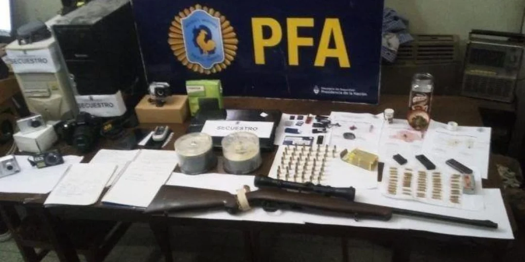 Luego de los allanamientos, la Policía Federal secuestró dos teléfonos celulares, dos CPU, cámaras digitales, discos externos, pendrives, 30 gramos de marihuana, un rifle calibre 22, 98 municiones de diversos calibres y tres cargadores en desuso calibre 22.