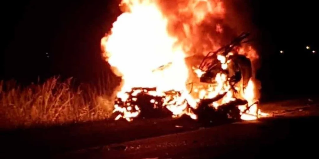 Como consecuencia del violento impacto, el vehículo de mayor porte terminó a un costado de la ruta, mientras que la utilitaria quedó sobre la calzada y ambos rodados se prendieron se prendieron fuego.
