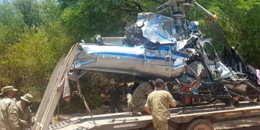 Los restos del helicóptero fueron extraídos durante la jornada del domingo y trasladados, hacia el taller aeronáutico de los hangares de Aviación Civil del Gobierno de Salta, en el aeropuerto internacional Martín Miguel de Güemes, de la capital salteña, donde quedaron en resguardo.