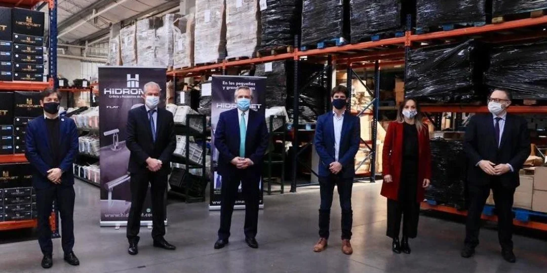 El presidente Alberto Fernández encabezó este mediodía el anuncio del nuevo programa de Precios Cuidados para la Construcción, en la planta de la empresa de grifería y accesorios, Hidromet, en la localidad bonaerense de San Fernando.