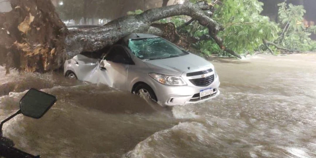 Los fuertes vientos y la caída de agua provocaron cortes del servicio eléctrico en varias zonas, caída de decenas de árboles y autos arrastrados por la correntada.