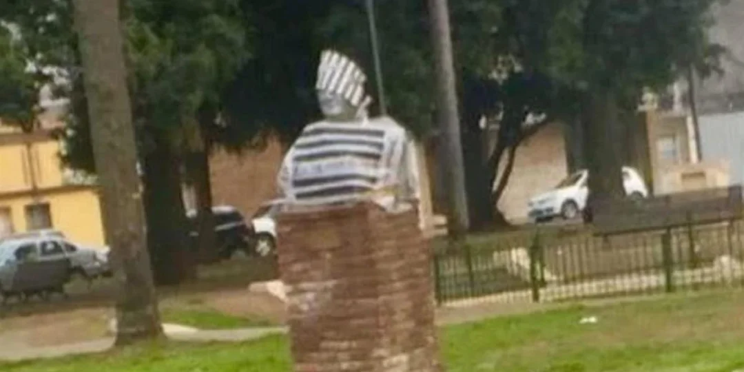 Le pusieron un traje de preso a un busto de Néstor Kirchner