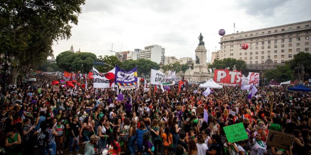 Miles de personas, en su mayoría grupos de chicas de entre 15 y 30 años, se movilizaron desde temprano con los característicos pañuelos verdes y sosteniendo carteles con consignas de denuncia como "Paren de matarnos", "Saquen sus rosarios de nuestros ovarios" y "Somos las nietas de las brujas que no pudiste quemar".