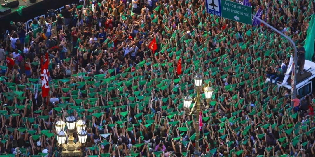 Miles de mujeres acudieron a la marcha con pañuelos verdes, símbolo del reclamo a favor de la interrupción involuntaria del embarazo, y hubo discursos breves a favor de la iniciativa sobre un escenario montado en las puertas del Congreso.