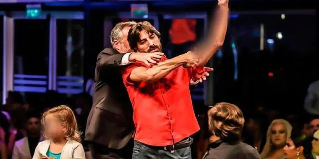 Moyano estaba junto a sus dos hijos que observaban con sorpresa lo que ocurría con su padre. Luego, el artista contó que se trató de una actuación en protesta por haber sufrido un hecho de censura.