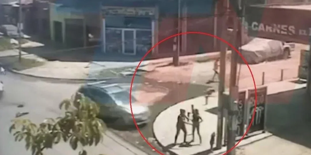 En imágenes de una cámara de seguridad se observa como una Volkswagen Surán se sube a la vereda y choca a tres personas que estaban en una esquina.