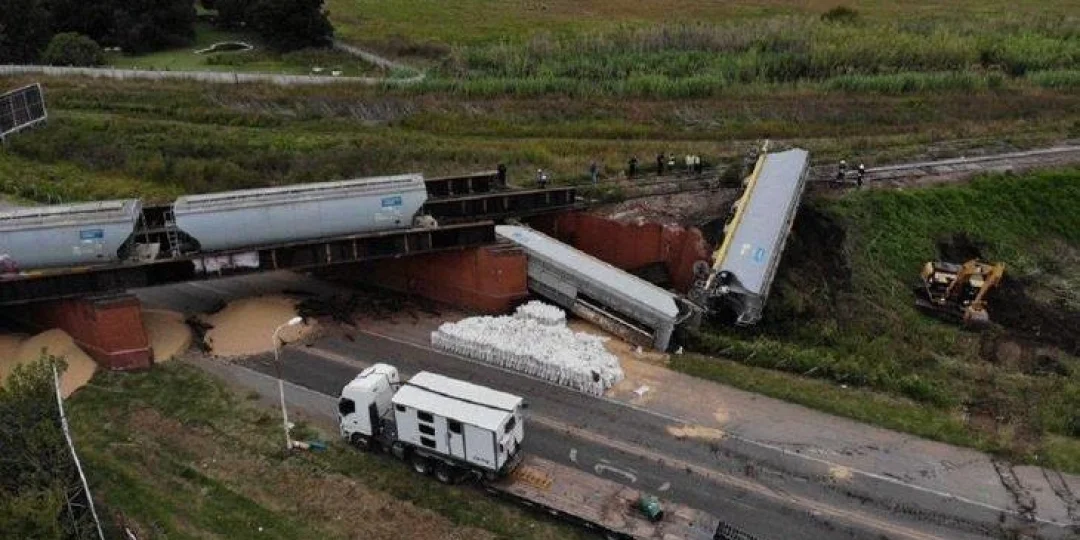 Un tren descarriló en el puente La Virginia y los vagones cayeron en la ruta