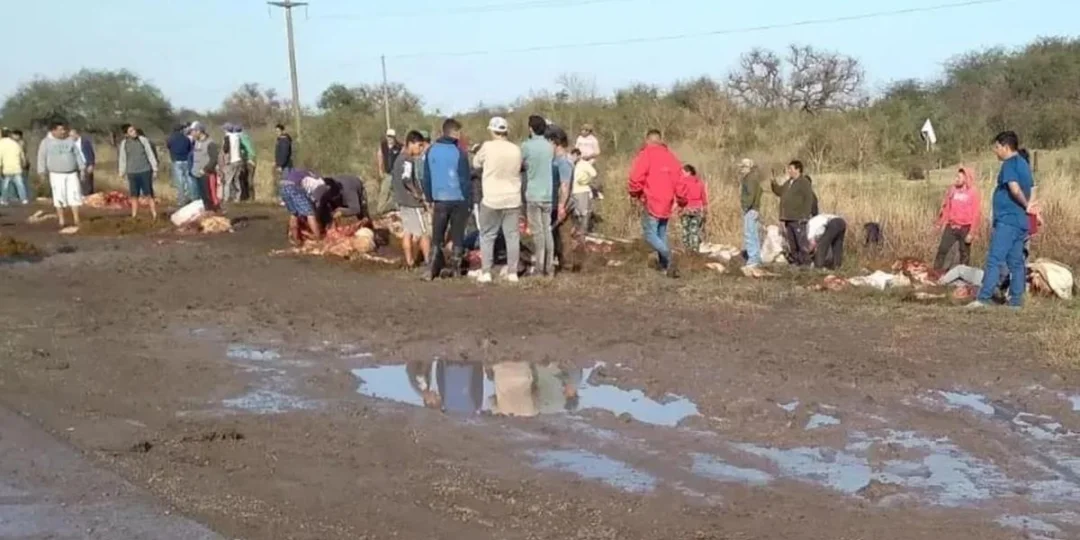 Un camión con 50 vacas volcó en la Ruta 11, a la altura del municipio santafesino de Calchaquí, y vecinos de la zona faenaron a los animales en el lugar. Todo quedó registrado por personas que transitaba por la zona.