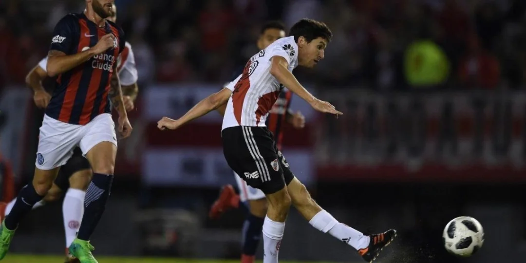 Sobre los 19 minutos, River tuvo otra posibilidad de convertir cuando Juan Fernando Quintero habilitó a Scocco, quien desde dentro del área por el medio remató y el balón esta vez rebotó en el palo derecho de Devecchi.En el segundo tiempo, el equipo local consiguió la victoria.El equipo local salió a buscar la victoria en el segundo tiempo y logró abrir la cuenta a los 9 minutos cuando Ignacio Fernández pasó por el medio de dos jugadores de San Lorenzo y, desde dentro del área por el medio, sacó un remate poniendo el balón en el medio del arco arriba.