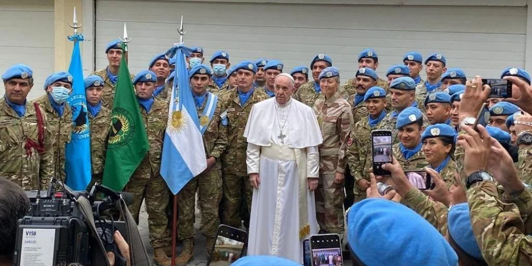 Concretamente, su Santidad se acercó a la Nunciatura de Nicosia para tener un encuentro con los soldados argentinos que cumplen servicios en esa misión de paz, desde hace casi 30 años. Durante el encuentro, además de las típicas selfies, Francisco bendijo sus banderas de guerra y estandartes, también, obsequió rosarios y medallas religiosas.