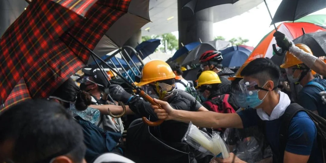 El 1 de julio, en el vigésimo segundo aniversario del retorno al mandato chino, tuvo lugar la mayor de las protestas. A tal punto llegó el conflicto que los manifestantes ingresaron al parlamento y reemplazaron la bandera. Llamativamente, la represión, temida desde el minuto cero, tardó en llegar.