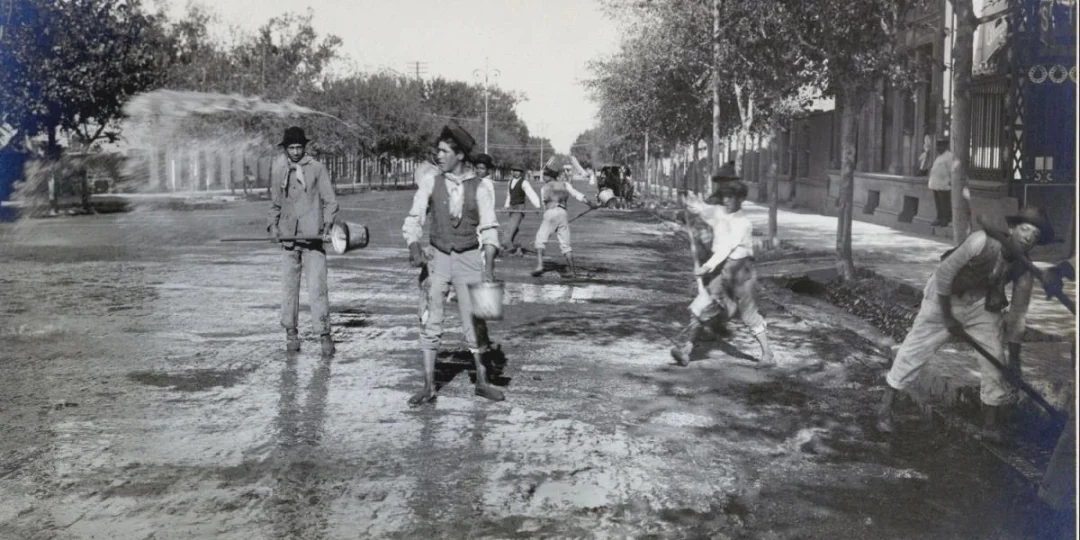 Chicos,-regando-la-calle-de-la--ciudad-de-Mendoza