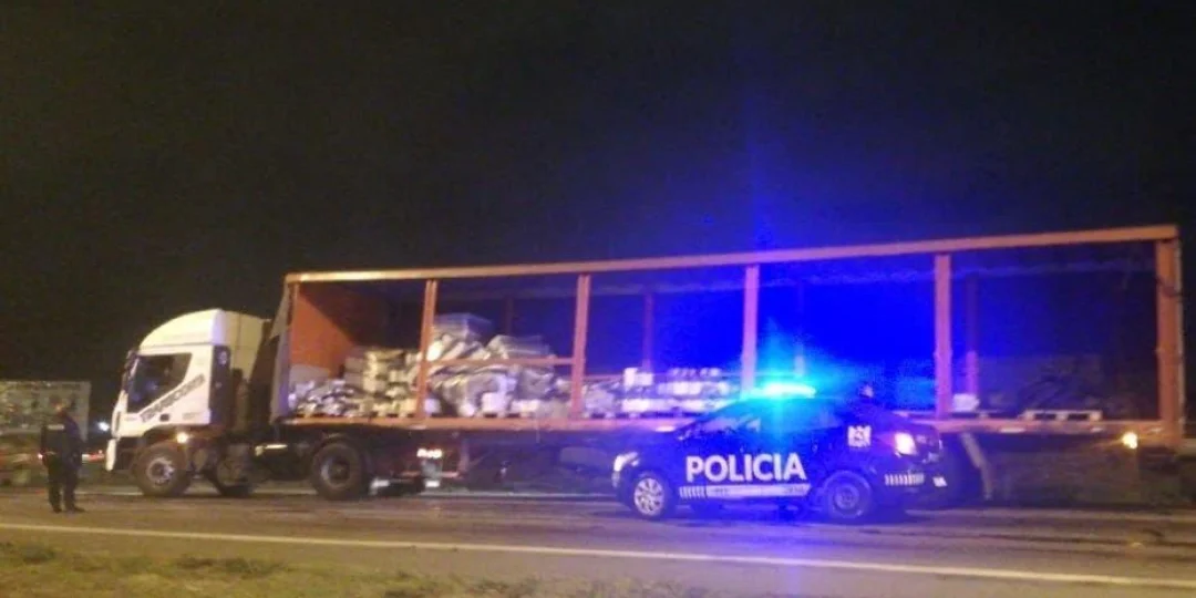 Un camión que transportaba botellas de vino volcó gran parte de su carga en la calzada.