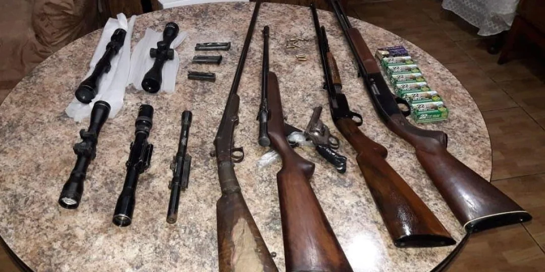 “Tres rifles calibre 22 mm largo, una escopeta calibre 14 mm, un revolver calibre 38 mm, 308 cartuchos calibre 22 largo y cinco miras telescópicas”, según lo informado por el Ministerio de Seguridad.