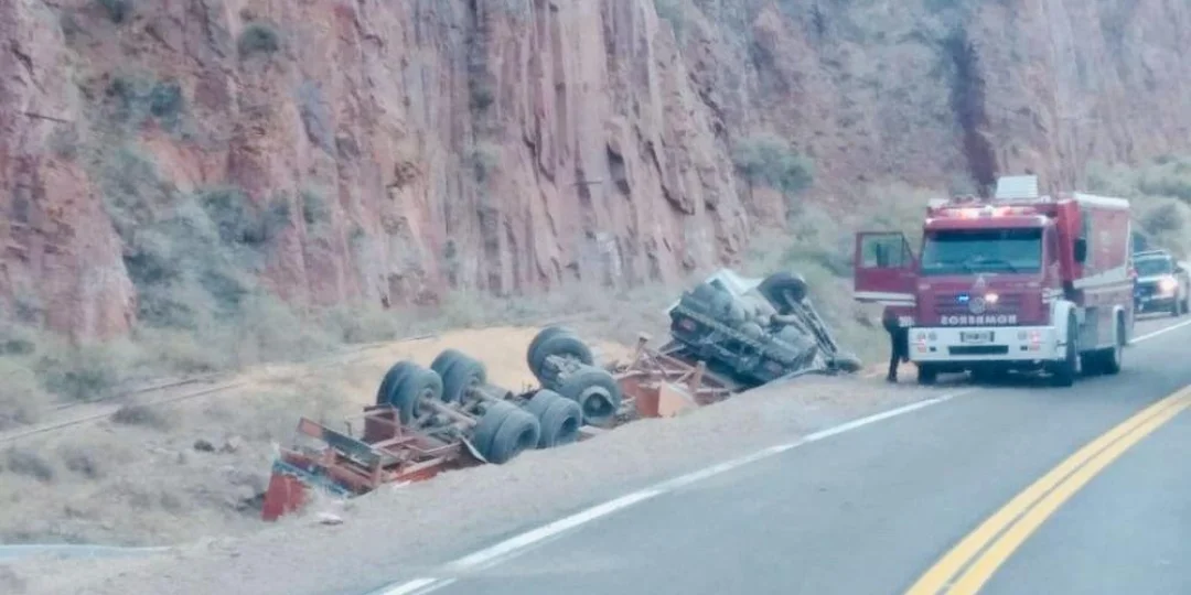 El incidente vial se dio en el kilómetro 1133 de la Ruta Internacional 7, donde el vehículo de carga marca Volvo terminó volcado pasando el túnel número 10.