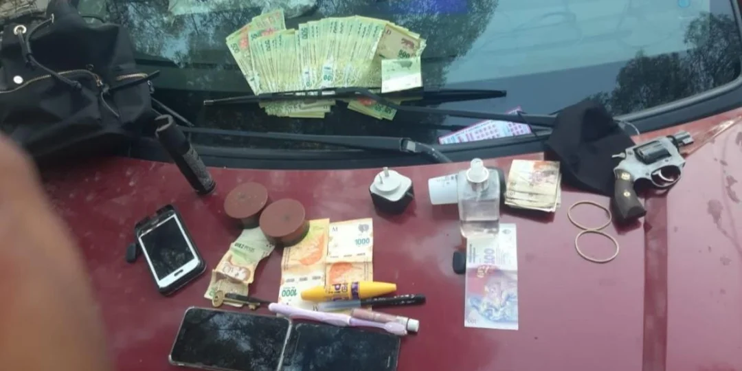 Aprehendieron a dos hombres, de 37 y 18 años, que circulaban en un Ford Fiesta. En el panel de la puerta delantera del costado del conductor hallaron un fajo de billetes y un arma de fuego calibre 32, con seis proyectiles.