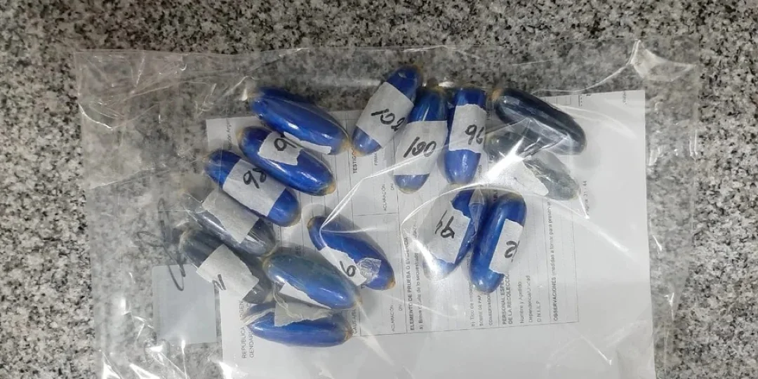 En total, se contabilizaron 118 cápsulas con cocaína, con un peso neto de 1 kilo 388 gramos. El Narcotest confirmó que la sustancia era clorhidrato de cocaína.