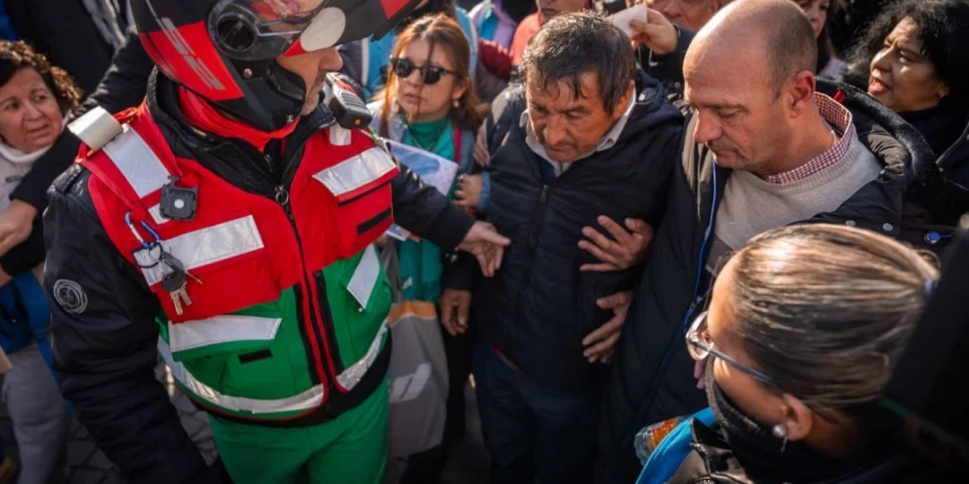 Tras una hora de participar en la concentración, el padre de Loan fue atendido por personal del SAME, quienes decidieron trasladarlo al Argerich, donde ya se encontraba en observación su hijo Mariano, quien también se había descompuesto durante el mediodía.