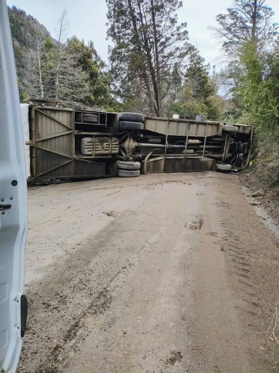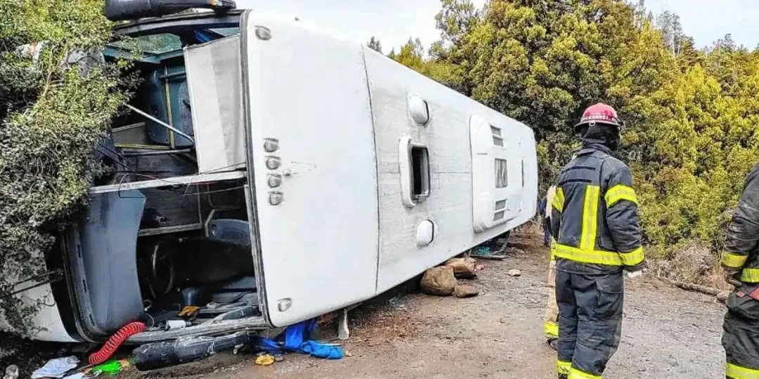 El micro, que pertenecería a la empresa Meridiano, transportaba 44 pasajeros hacia Villa Traful cuando perdió el control y terminó volcado sobre la calzada.
