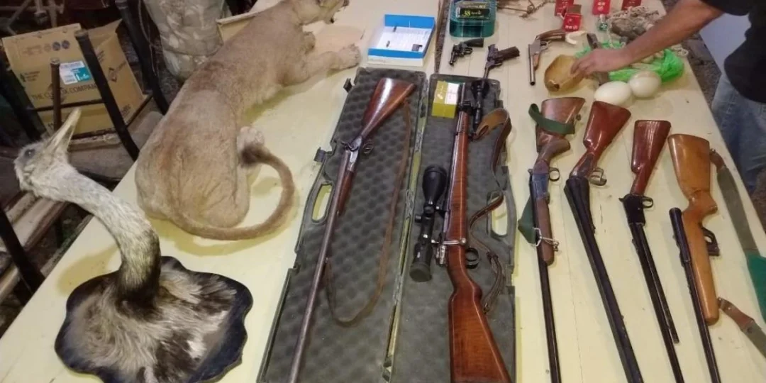 Además se secuestraron animales de fauna silvestre como un mono de la especie carayá, un puma embalsamado, una cabeza de ñandú taxidermizada, 14 aves, trampas de zorros y otros elementos provenientes de la cacería furtiva.