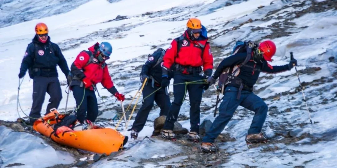 Fueron casi 12 horas de viaje hasta llegar al glaciar donde se realizaron maniobras específicas de extracción y pericias de rigor para luego descender el cuerpo.