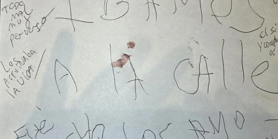 El papel, una hoja A4 escrita horizontal, estaba manchado de sangre y contenía frases sueltas como:
