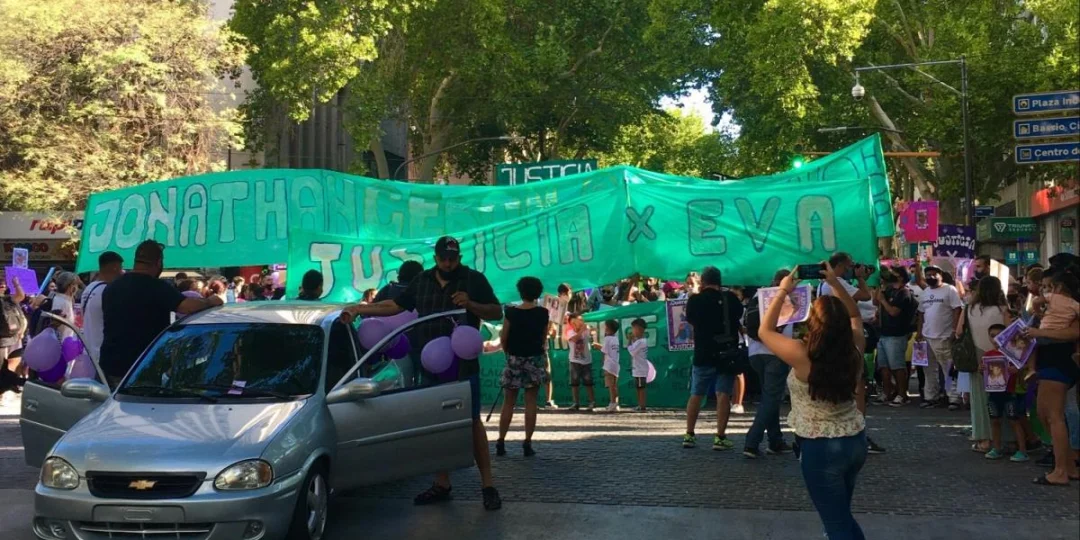 La concentración se realizó en el KM O y luego siguió por la calle San Martín, Las Heras y Patricias Mendocinas hasta llegar a la Casa de Gobierno. El único mensaje, reflejado en carteles y pancartas, era Justicia por Eva.