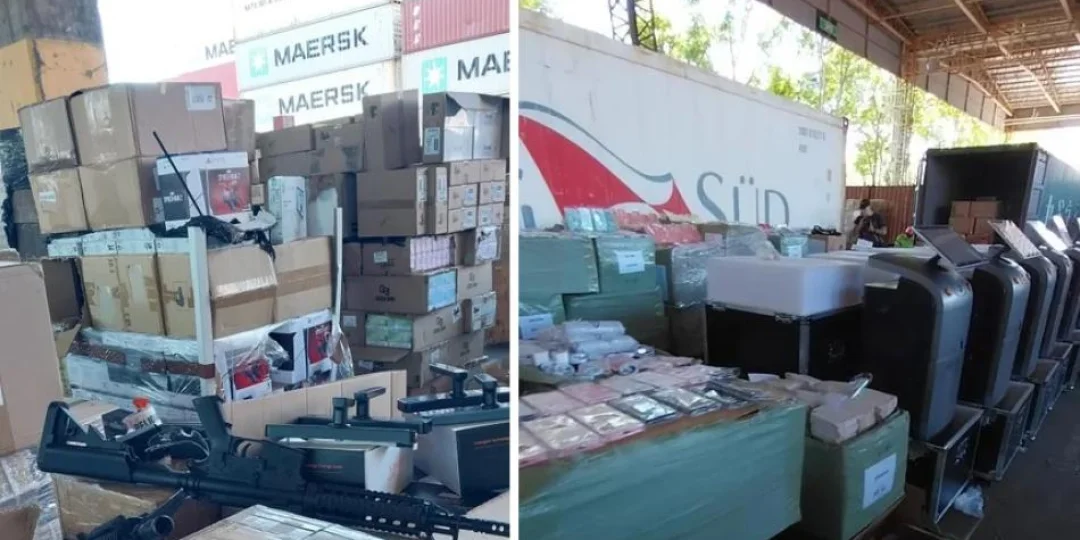 Según informaron fuentes del organismo, los agentes detectaron miles de artefactos electrónicos, teléfonos, computadoras, armas de aire comprimido, hélices de helicóptero, motores de aviones y autos valuados en millones de pesos.