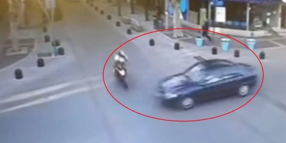Un terrible accidente entre una moto y un auto quedó registrado por una cámara de seguridad instalada en una esquina. Las imágenes del momento son impresionantes. El motociclista perdió su pie izquierdo