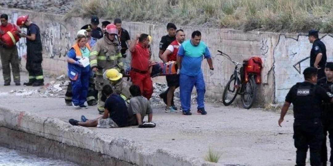 Cuatro jóvenes tuvieron que ser rescatados del canal Cacique Guaymallén, luego de ser arrastrados por el agua.