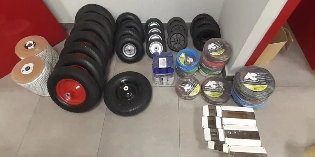 En la vivienda, ubicada en calle Hualpa al 895, encontraron: siete ruedas de carretilla, ocho ruedas grandes inflables de carretilla, tres ruedas chicas inflables de carretilla, tres cubiertas de carretilla, 22 recipientes de silicona, 12 recipientes de insecticidas, 11 rollos de cable, 152 rollos de cinta papel, 47 rollos de cinta de embalar, 44 enchufes triples, nueve rollos de soga, 14 cajas de luz, 12 pares de guantes, siete cajas térmicas y un rollo completo de cable.