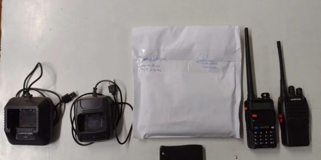 Además de dos chapas patentes dominio AE175OH, con pedido de secuestro de la Oficina Fiscal Nº 16, por robo agravado, dos chapas patentes dominio AB209XV, un celular Motorola y un celular Sony, dos inhibidores de señal con cargadores y una batería adicional. También se encontró 295 gramos de cannabis sativa.