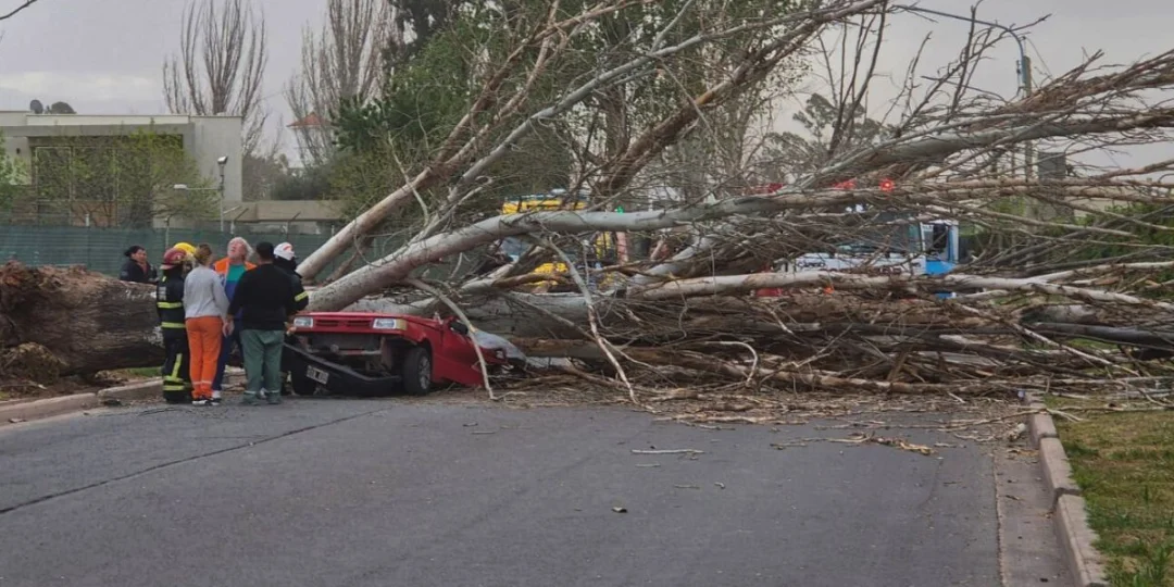 Una tragedia conmociona al departamento de Maipú esta tarde, luego de que un árbol de gran porte se desplomara sobre un automóvil en la calle Rawson entre Alta Italia y Adolfo Villanueva, en las inmediaciones del barrio El Torreón.