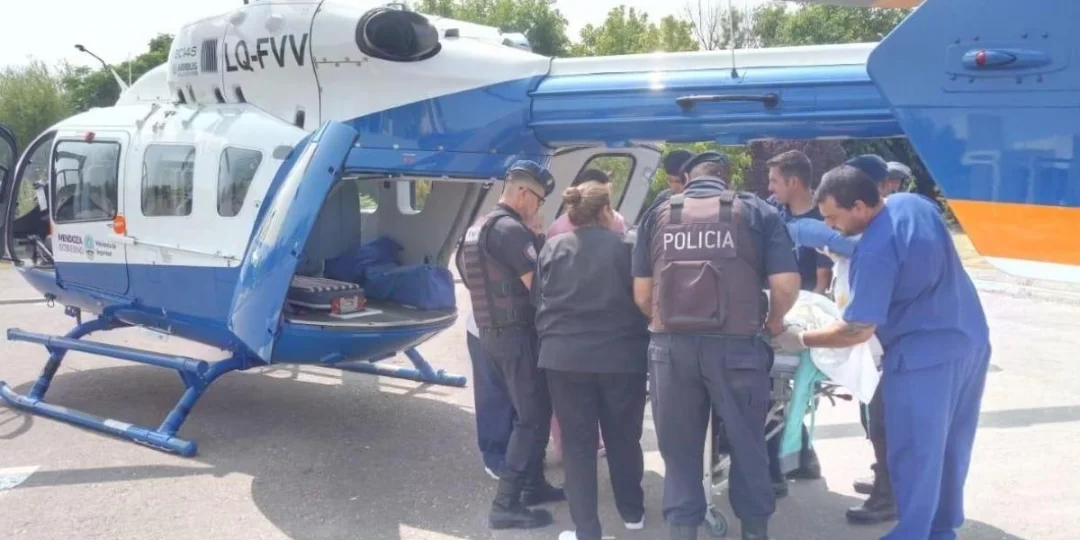 La víctima debió ser trasladad en un helicóptero sanitario debido a la gravedad de la herida producida por la herramienta de trabajo