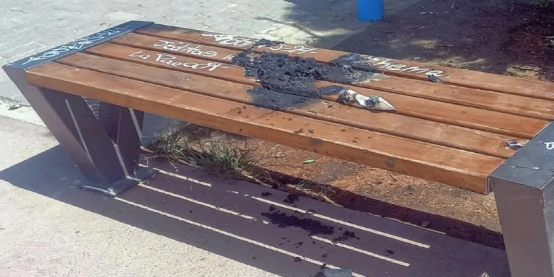 Los efectos del violento ataque fueron evidentes en la plaza, donde uno de los bancos quedó marcado por el fuego después de que el agresor rociara a los jóvenes con kerosene y les lanzara una antorcha ardiente.