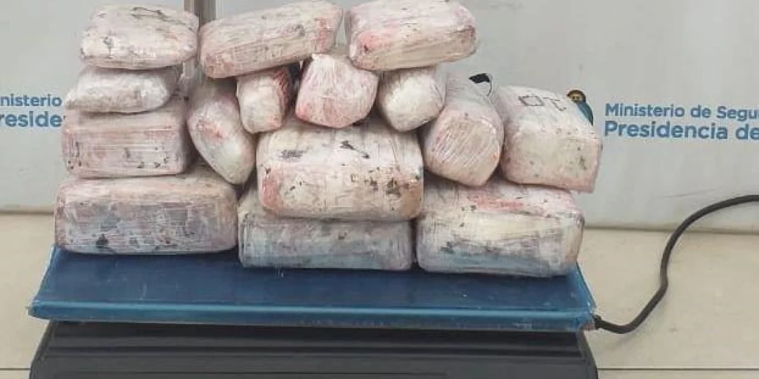 Con la presencia de testigos hábiles requeridos para tal maniobra, los gendarmes descubrieron que la mujer llevaba un bulto que aparentaba ser un vientre de embarazada pero que en realidad se trataba de un cartón envuelto en papel film y pegado con engrudo que en su interior tenía 15 paquete rectangulares de diferentes tamaños, con una sustancia verde amarronada que arrojó un peso total de 4,10 kgs y que al ser sometidos a una prueba de campo, se confirmó que era marihuana.