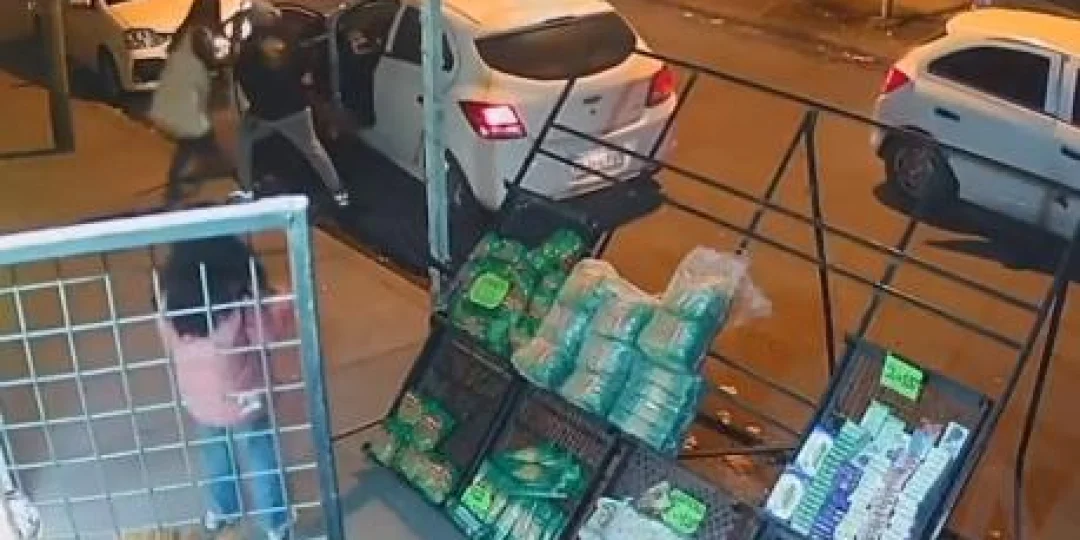 Según relataron los vecinos de la zona a medios locales, ese Chevrolet Onix blanco ya había pasado dos veces por el negocio, pero al ver el rodado estacionado y con gente adentro retomó la calle de contramano y frenó en forma repentina a la par del auto de las víctimas para cometer el asalto.