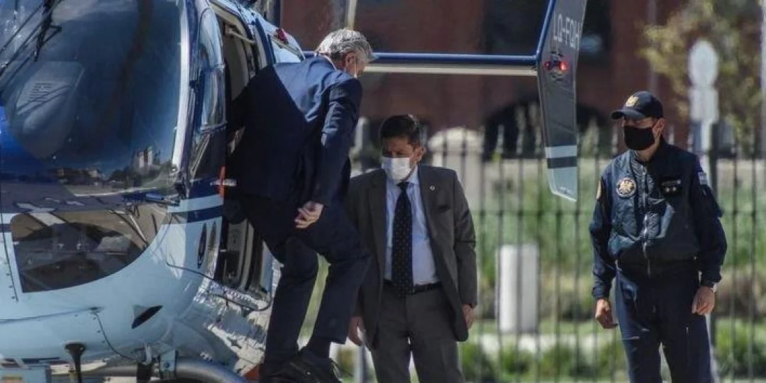 El jefe de Estado arribó al mediodía acompañado por el secretario general de la Presidencia, Julio Vitobello, y el secretario de Asuntos Estratégicos de la Presidencia de la Nación, Gustavo Beliz; tras haber participado desde la residencia de Olivos, en forma virtual, de un foro sobre cambio climático organizado por el presidente de Estados Unidos, Joe Biden.