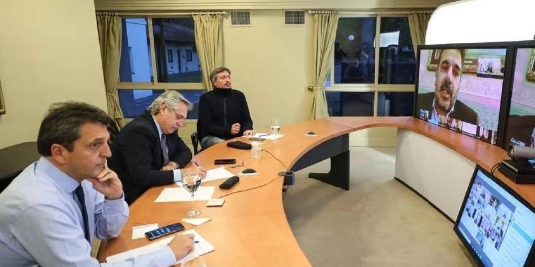 El presidente Alberto Fernández, acompañado por el titular de la Cámara de Diputados, Sergio Massa y el jefe del bloque oficialista, Máximo Kirchner, mantuvo este lunes desde la Residencia de Olivos una reunión virtual con referentes parlamentarios de Juntos por el Cambio y del Frente de Todos.El encuentro había sido solicitado por los diferentes bloques opositores, aunque desde Juntos por el Cambio habían pedido reunirse a solas con el presidente."No se qué querrán hablar, pero es agenda abierta. Me pidieron una reunión primero con los representantes del bloque, dije que sí. Después me dijeron la idea de hacerlo por separado", sostuvo el mandatario durante la entrevista con FM La Patriada.El temario original incluyó cuestiones centrales como la pospandemia, la deuda externa y los proyectos de beneficios impositivos para quienes entren en mora por efecto de la cuarentena, según dijeron fuentes oficiales.El encuentro comenzó cerca de las 18, una hora después del horario previsto, con la presencia de parlamentarios de Juntos por el Cambio, aunque representado solamente por la UCR y el PRO ante la ausencia del presidente de la Coalición Cívica, Maximiliano Ferraro, quien resolvió hace unas horas bajarse de la videoconferencia y dar a conocer más tarde un comunicado con la posición de su partido.Por la oposición participaron los senadores Humberto Schiavone, Luis Naidenoff, Martín Lousteau, Laura Machado y los diputados Álvaro González, Mario Negri, Alfredo Cornejo y Cristian Ritondo.Además de Máximo Kirchner, quien participa de forma presencial desde Olivos, asisten por el oficialismo los senadores José Mayans, Claudia Ledesma Abdala, Anabel Fernández Sagasti, Maurice Closs y el diputado José Luis Gioja.Ante la negativa de Juntos por el Cambio de participar junto a otros bloques parlamentarios, se resolvió que otro grupo fuera recibido en un segundo turno.