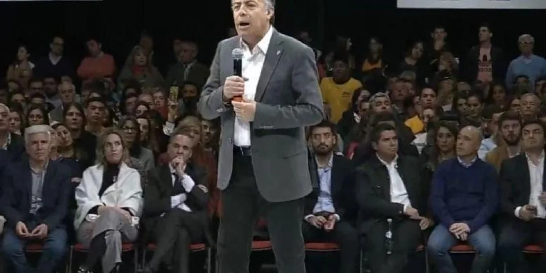El gobernador de Mendoza, Alfredo Cornejo, tomó la palabra este lunes en el acto político de Juntos por el Cambio en el auditorio Ángel Bustelo y fustigó a la oposición.