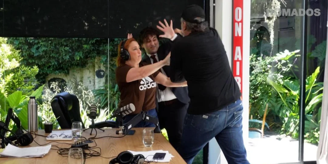 El enfrentamiento verbal se transformó en físico y, según imágenes difundidas por militantes libertarios, se ve a Belliboni lanzándose sobre Fijap, mientras la conductora intentaba interponerse entre ambos. Aunque no se observan golpes directos a María Julia Oliván, los libertarios sugirieron que también intentó agredirla.