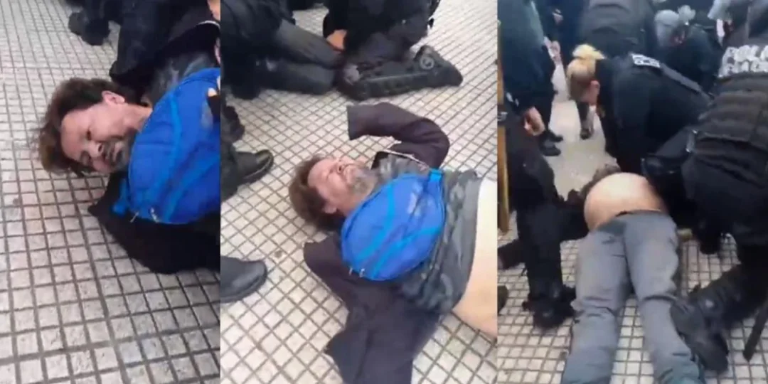 Del otro lado de la línea de choque de la Policía de la Ciudad, se ve a cuatro personas siendo sometidas por varios efectivos que los tenían inmovilizados contra el piso. Entre ellos, estaba Facundo Molares.