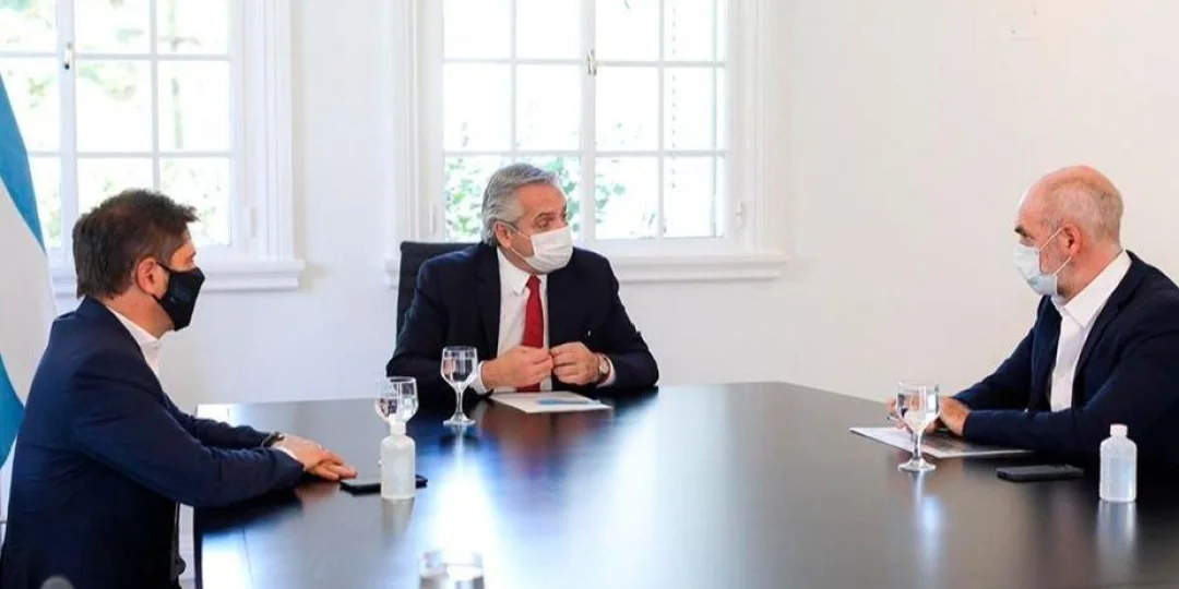 El aumento de casos de coronavirus registrado en los últimos días en el Área Metropolitana de Buenos Aires (AMBA) es seguido con atención por el Gobierno nacional, que decidió monitorear la situación en forma conjunta y en reuniones periódicas con las autoridades bonaerenses y porteñas.Así quedó acordado en la tarde del miércoles en una reunión que mantuvo el presidente Alberto Fernández con el gobernador bonaerense Axel Kicillof y con el jefe de Gobierno porteño, Horacio Rodríguez Larreta, en la Quinta Presidencial de Olivos.Los tres mandatarios coincidieron en reforzar el llamado a la población, apelando a la "responsabilidad" individual, para que se "extremen los cuidados", indicaron fuentes oficiales.Fernández, Kicillof y Larreta admitieron su "preocupación" por el aumento de casos y decidieron que, a partir de la semana próxima, mantendrán mayor contacto sobre esta situación y le darán dinamismo a los encuentros para evaluar la situación sanitaria y los partes diarios de casos del Covid-19, aunque por ahora no están previstas nuevas restricciones."No estamos para cerrar algo concreto por ahora", señalaron fuentes de la Gobernación bonaerense, y aclararon se va a ir "monitoreando" la pandemia y esa posibilidad es lejana."Sí queremos hacer una fuerte advertencia por el relajamiento general", indicaron las fuentes, y apuntaron a la dependencia "de los comportamientos sociales, cumplimientos de los protocolos y los cuidados" para evitar una segunda ola."Cuando pensamos las reuniones de hasta 200 personas, al final, por sugerencia de los intendentes, y por la suba de casos, dimos marcha atrás", ejemplificaron.Rodríguez Larreta fue acompañado por el vicejefe del Gobierno porteño, Diego Santilli, quien no participó de la reunión; y luego ambos se retiraron en un automóvil sin hacer declaraciones; en tanto que Kicillof se fue al mismo tiempo, en el helicóptero de la provincia de Buenos Aires.La última reunión que habían mantenido cara a cara los tres funcionarios había sido el 9 de noviembre último, también en Olivos, y los encuentros siguientes fueron encabezados por sus respectivos jefes de Gabinete o por los ministros de Salud.Antes del encuentro de este miércoles, Kicillof había asegurado a Radio con Vos que tanto él como los intendentes están "preocupados" por el aumento de contagios y pidió "seguir cuidándose"."Me parece que ha habido un relajamiento, incluso con la vacuna creo que tuvo el efecto contraproducente. A partir de que anunciamos la llegada de la vacuna, hay algunos que dijeron ´ya pasó´ y no es así".Consultado sobre la posibilidad de cerrar la temporada turística estival, Kicillof dijo que "depende de los comportamientos sociales, cumplimientos de los protocolos y los cuidados, la conciencia que tenga cada uno, la responsabilidad"."Lo vemos en todo Europa, hay toque de queda en un montón de países europeos, para que la gente no salga a la noche, pero no quiero tirar ningún título", aclaró el gobernador, que señaló que este crecimiento de casos "es desde hace dos semanas, en medio de las fiestas".Kicillof reconoció que "el drama que había con las vacaciones es el intercambio el virus, con sus portadores de una zona a la otra"."Esperemos tener la mayor cantidad de gente vacunada para otoño, de donde venga, siempre y cuando la apruebe Anmat (Administración Nacional de Medicamentos, Alimentos y Tecnología Médica) que es nuestro organismo", concluyó.